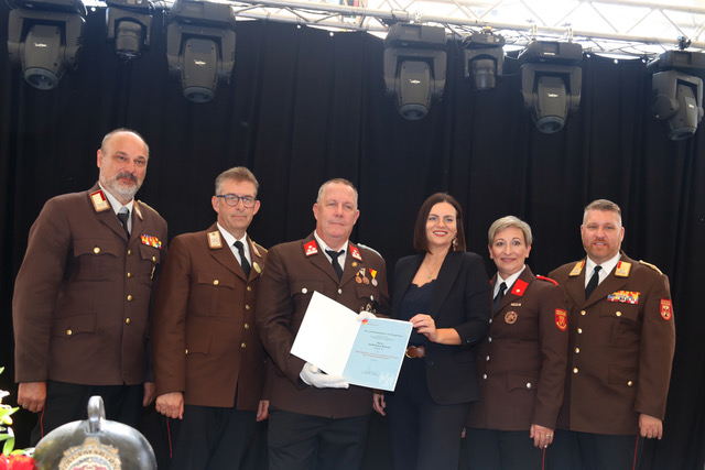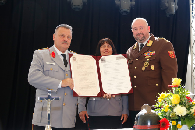Ein bewegender Moment des Festaktes war die Übergabe der historischen Gründungsurkunde der israelitischen Feuerwehr Mattersburg durch Kameraden aus Ungarn. Mattersburg beherbergte einst zwei Feuerwehren – eine christliche und eine israelitische. Diese wertvolle Urkunde ergänzt die bereits 2021 übergebene Gründungsurkunde der Freiwilligen Feuerwehr Mattersdorf und stellt ein bedeutendes Stück Stadt- und Feuerwehrgeschichte dar.