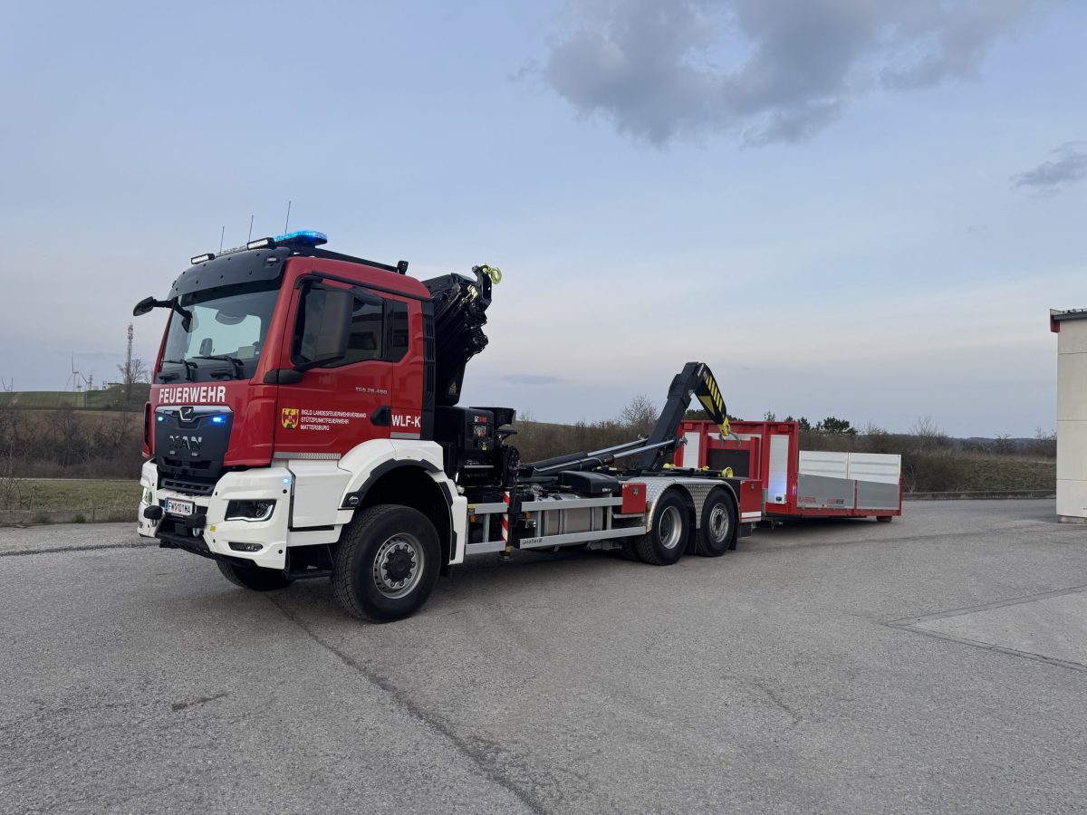 Am Freitag, den 20. März 2026 durfte die Feuerwehr Mattersburg, ihren neuesten Zugang im Fuhrpark begrüßen. Die feierliche Übernahme sowie die anschließende Einschulung fanden im Feuerwehrhaus Mattersburg statt. Mit diesem Fahrzeug handelt es sich um das letzte von insgesamt 17 Wechselladerfahrzeugen mit Kran (WLF-K), die im Rahmen des burgenländischen Katastrophenschutzkonzeptes angeschafft wurden.