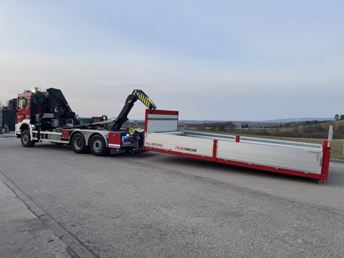 Mit den Wechselladerfahrzeugen erhalten die burgenländischen Feuerwehren ein vielseitig einsetzbares Einsatzmittel, das sich sowohl für regionale als auch überregionale Einsätze bestens eignet und als Trägerfahrzeug für unterschiedlichste Aufbauten dient. Die multifunktionalen Fahrzeuge können mithilfe eines Abrollkippers verschiedene Aufbaumodule – wie Plateaus für technische Einsätze, Module für Brandeinsätze sowie diverse Funktionscontainer – aufnehmen. Darüber hinaus sind die Fahrzeuge mit einem Ladekran samt Zubehör wie Arbeitskorb, Palettengabel sowie Holz- und Schüttgutgreifer ausgestattet. Ein weiterer wesentlicher Bestandteil ist eine 7t Seilwinde im Heck.