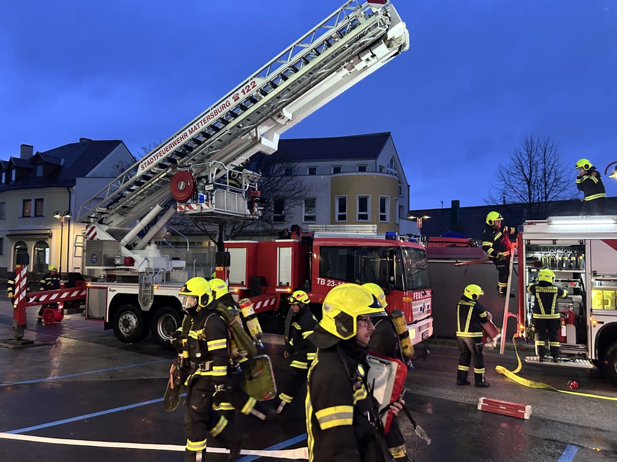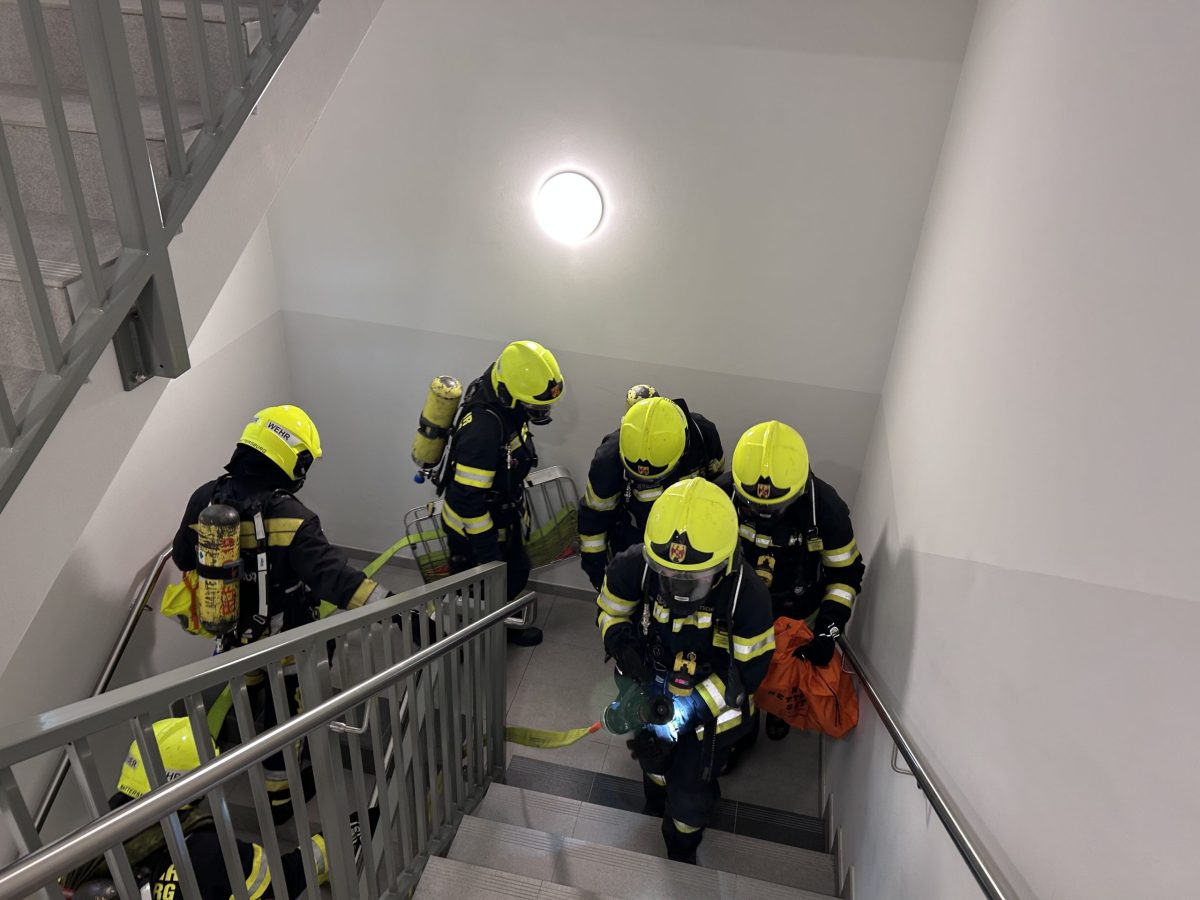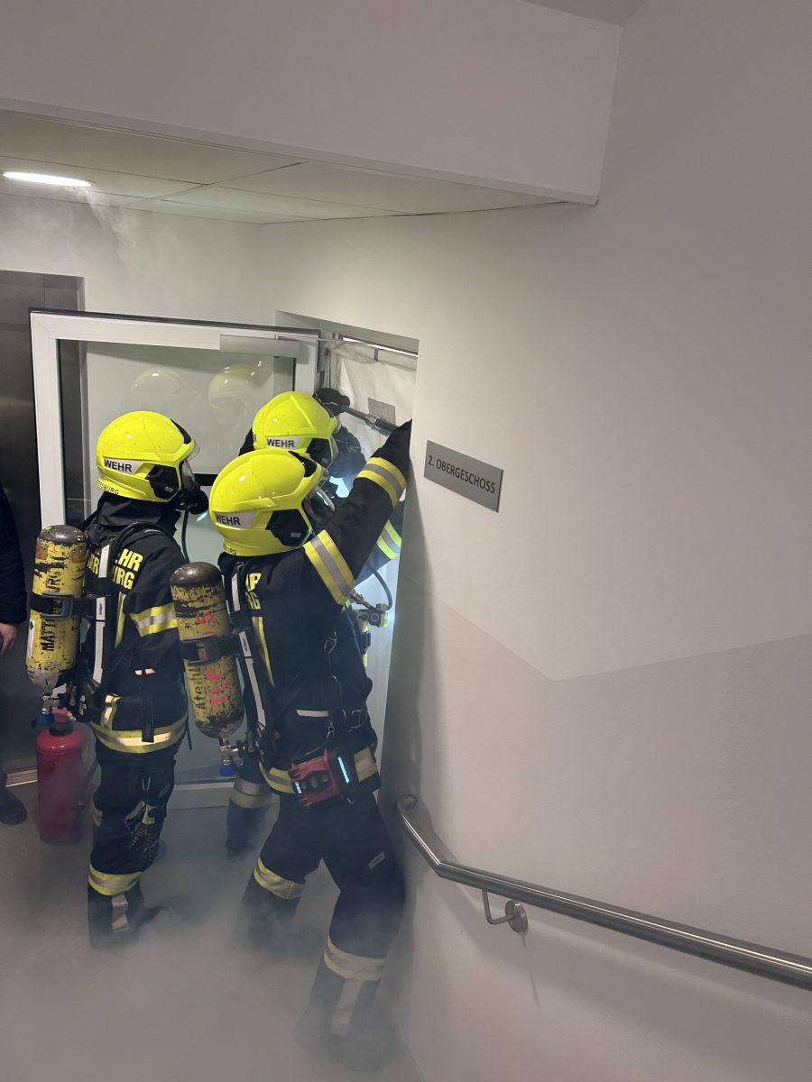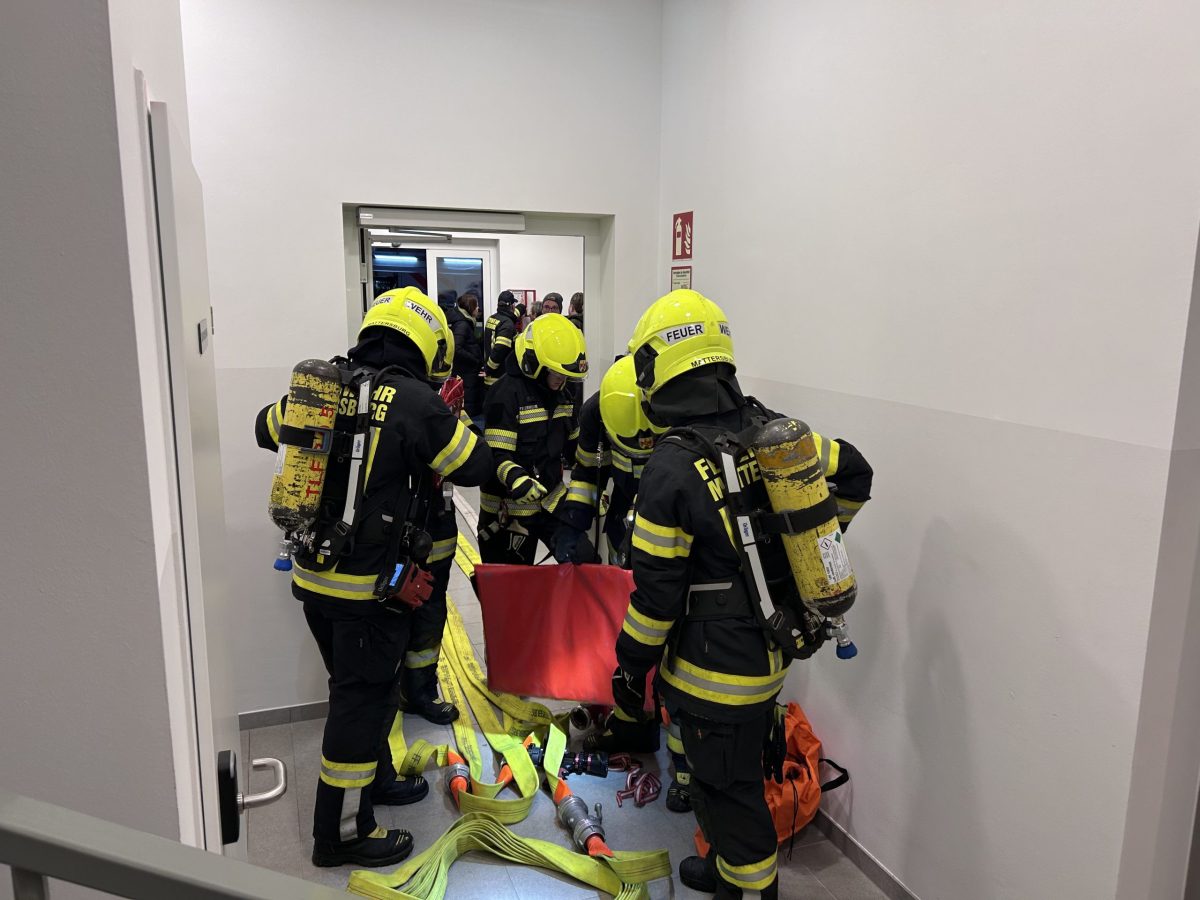 Als Übungsobjekt diente in diesem Jahr das neue Schülerheim in Mattersburg. Übungsannahme war ein Brandereignis im Gebäude mit mehreren vermissten Personen. Nach einer kurzen Lageerkundung durch den Einsatzleiter erfolgte die umgehende Befehlsgebung an die eingesetzten Kräfte. Zwei Atemschutztrupps drangen zur Menschenrettung und Brandbekämpfung in das Gebäudeinnere vor. Parallel dazu wurde die Wasserversorgung durch den Aufbau einer Zubringleitung sichergestellt. Zeitgleich brachte man die Teleskopmastbühne in Stellung, um weitere eingeschlossene Personen aus dem 4. Obergeschoss zu retten. Insgesamt konnten vier Personen rasch aufgefunden und durch die eingesetzten Atemschutztrupps sowie mittels Teleskopmastbühne sicher aus dem Gebäude gerettet werden. In weiterer Folge wurde der Brand unter Kontrolle gebracht und schließlich „Brand aus“ gemeldet.