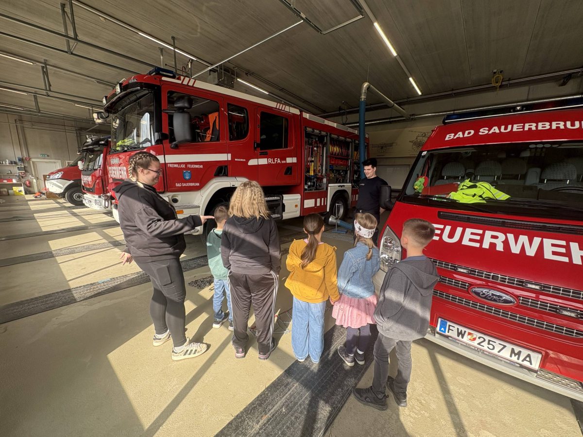 Ein besonderer Zwischenstopp führte uns nach Bad Sauerbrunn, wo unsere Kinder die Möglichkeit hatten, die Feuerwehrfahrzeuge sowie das Feuerwehrhaus auch von innen zu erkunden.