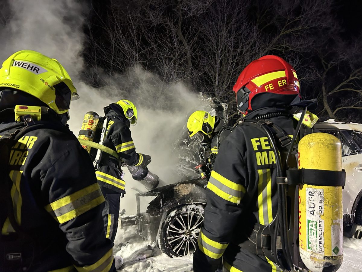 Aus bislang unbekannter Ursache geriet ein PKW in Brand. Beim Eintreffen der ersten Einsatzkräfte konnte rasch festgestellt werden, dass sich keine Personen mehr im Fahrzeug befanden.